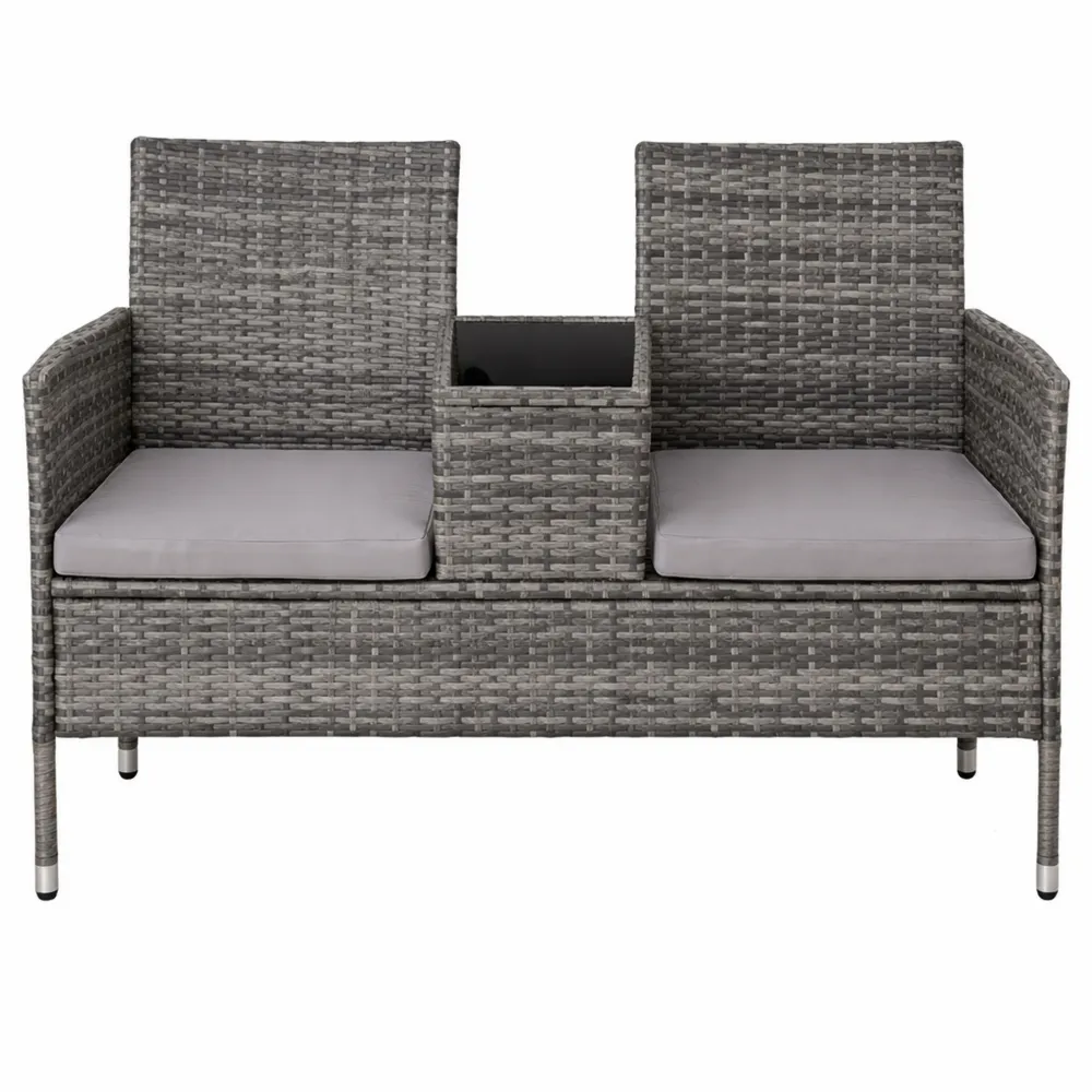 Trascorrere ore all'aperto in due: sulla panchina da giardino si siede comodamente e in modo stabile: la struttura in acciaio verniciato a polvere offre stabilità, mentre l'intreccio di polirattan resiste agli agenti atmosferici come i raggi UV.