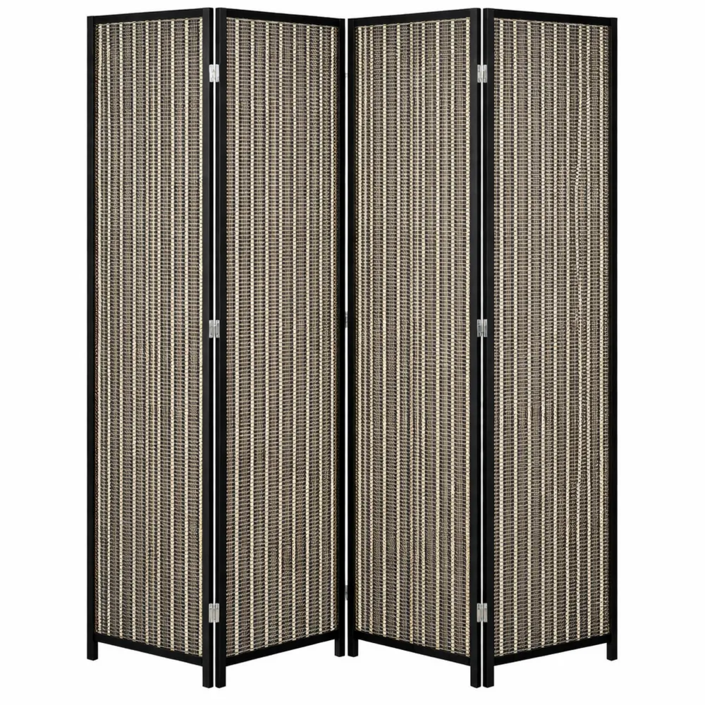 Paravento con design a 4 pannelli realizzato in legno di pino e bambù, utile a separare spazi interni ed esterni come soggiorno, ufficio e terrazza. Tessitura in bambù offre resistenza e durata ai pannelli. I pannelli sono collegati con cerniere che permettono di piegare facilmente il paravento. Piedini sollevano il paravento dal suolo per garantire traspirabilità e protezione dall'umidità. I cuscinetti sui piedini garantiscono stabilità. Dimensioni generali: 180L x 1.9P x 180Acm.